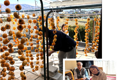 この季節、毎年、信州は松本の友人宅に、干し柿つくり、“柿の皮むき、お手伝“に行くようになった。今年は11月15,16日の土、日、娘夫婦の車で、鎌倉を朝5時に出て8時過ぎには松本へ。