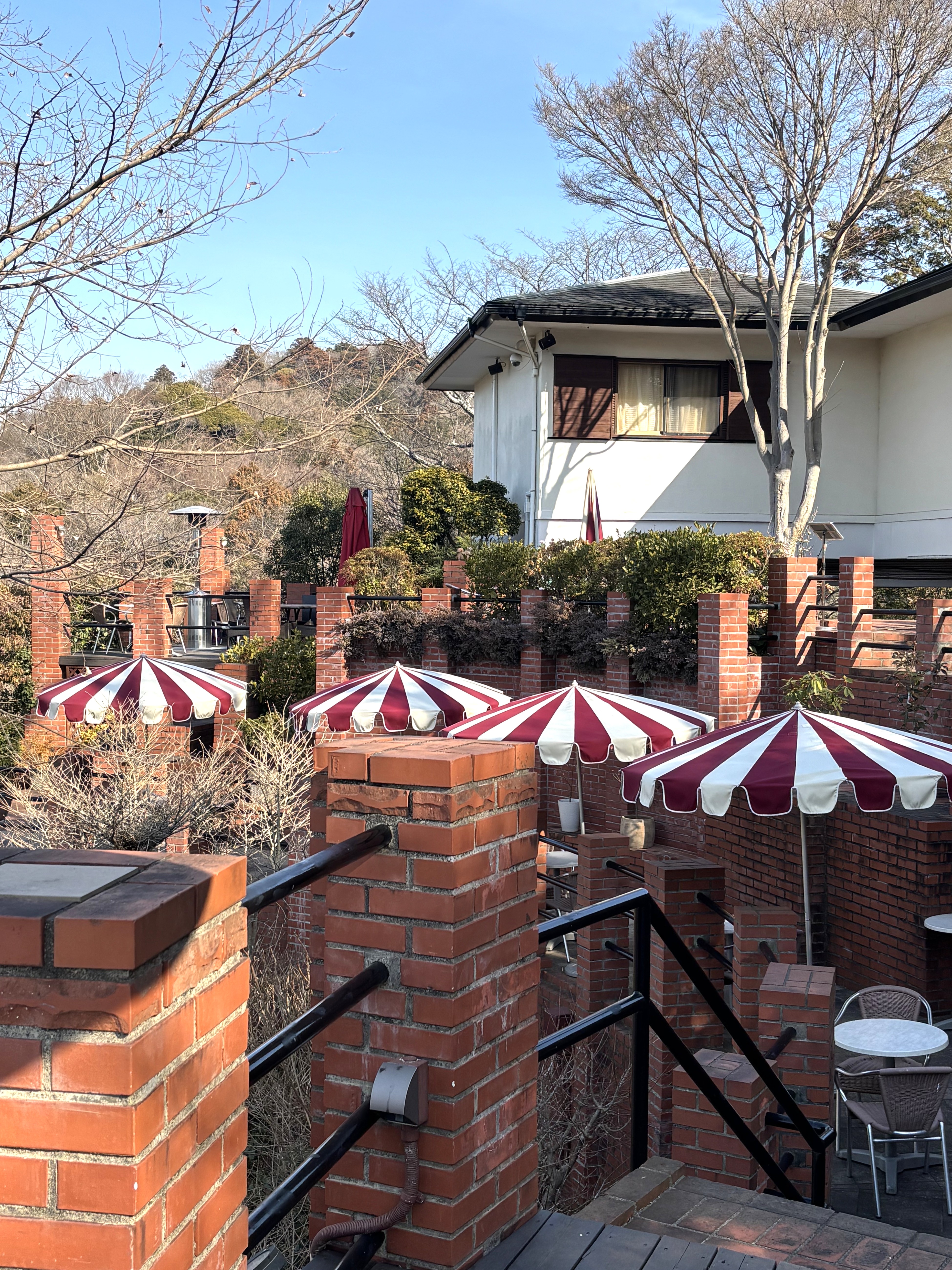 10分足らずで治療が終わり、帰宅するには早すぎるから前から覗いて見たかった、近くの鎌倉カフェテラス樹(いつき)ガーデンに寄る。敷地は、実業家の元別荘でオーナーとスタッフの実質二人で休日を利用して作り上げ、現在の形になるまで、約20年程の年月を要したとパンフにある。何よりも自然の原風景を大切にし、テラス席は、山の地形にそった形に作られているのはすごくいい。