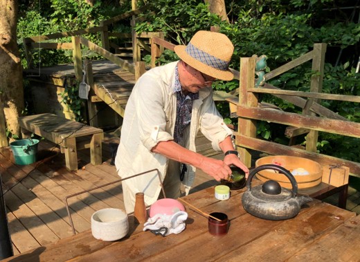 揺れる茶室での猛暑の喫茶は何とも風流だ。風に揺れる小さな茶室だから、炉も切れないし、